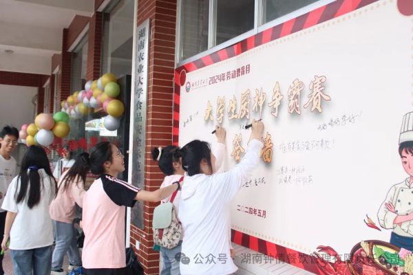 本次廚神爭(zhēng)霸賽在我司托管經(jīng)營(yíng)的東湖學(xué)生一食堂舉行,5月11日一大早我們就在食堂進(jìn)行了現(xiàn)場(chǎng)布置,利用氣球等物品,把食堂里里外外都進(jìn)行了裝飾,讓學(xué)生們感受到廚神爭(zhēng)霸賽的氛圍。