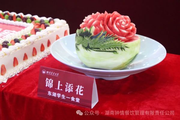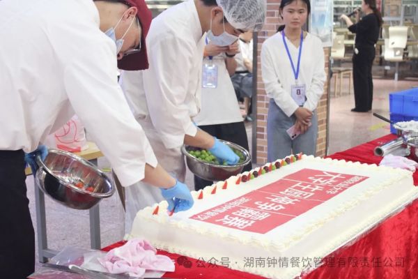 我司還特意邀請(qǐng)了知名品牌《鷺島面包》的師傅們來(lái)現(xiàn)場(chǎng)制作廚神爭(zhēng)霸賽專(zhuān)屬蛋糕,由楊海軍廚師長(zhǎng)現(xiàn)場(chǎng)雕刻西瓜,寓意龍鳳呈祥,為本次活動(dòng)錦上添花!各餐飲公司也都拿出了自己的拿手菜,我司準(zhǔn)備了創(chuàng)意十足的荷塘鳴蛙,來(lái)進(jìn)行美食展示,一起熱烈慶祝本次廚神爭(zhēng)霸賽活動(dòng)!